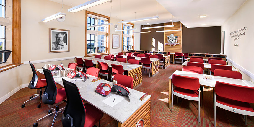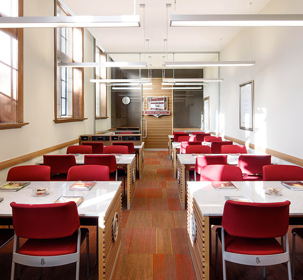 From the red brick and white Oamaru stone fabric used across the façade, to the restoration of delicately finished oak in the entrance hall and library and preservation of rimu timber panelling and jarrah wood flooring, she noted, the work has set the facility apart as a work of art itself.