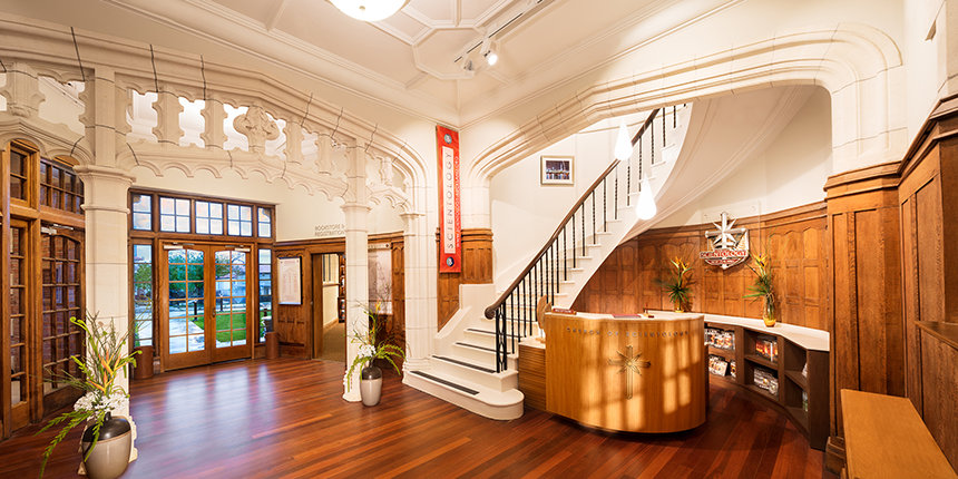 Overlooking the city and Auckland’s magnificent Waitemata Harbour, the local historic site and cherished landmark, preserved and restored beautifully by the Church in cooperation with local architects and preservationists, is a resurrection of what was once home to spiritual training for clergy and religious scholars for nearly a half century.