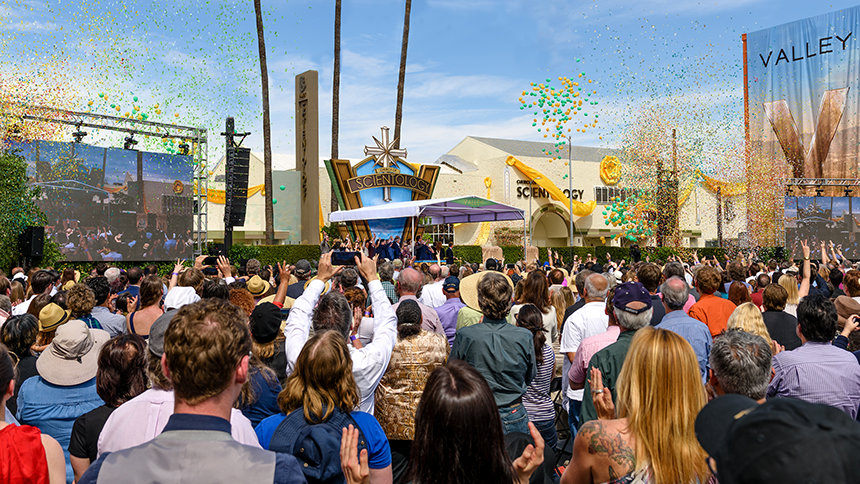 So it was, on Sunday, March 19 at 1p.m., 5,000 Scientologists gathered to witness the largest Ideal Church of Scientology in North America come to life. It was a ceremony befitting the size, scope and substance of the Valley’s new home itself, from a medley of classic film scores evoking the golden days of cinema, to the “V for Valley” anthem written and arranged especially for the occasion. The thousands in attendance rose to their feet in jubilant celebration and applauded each impassioned dignitary praising the Church’s greater social impact.
