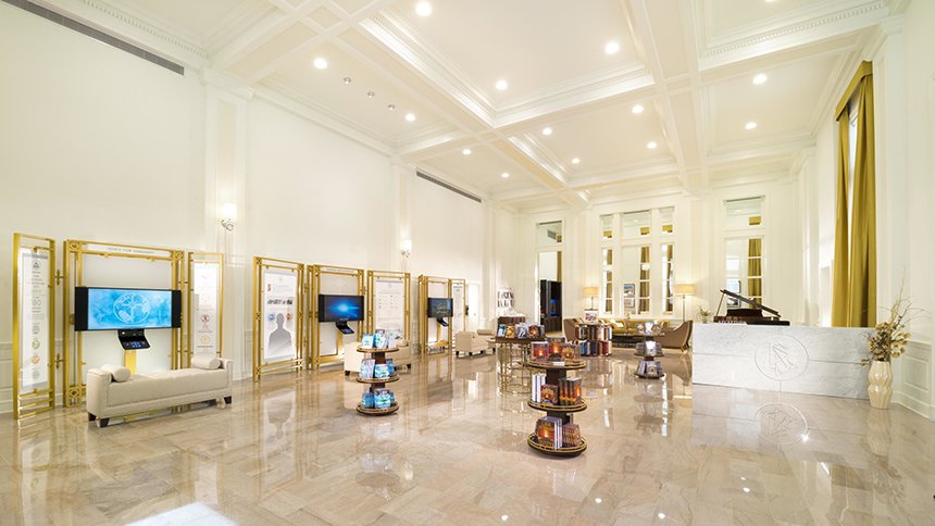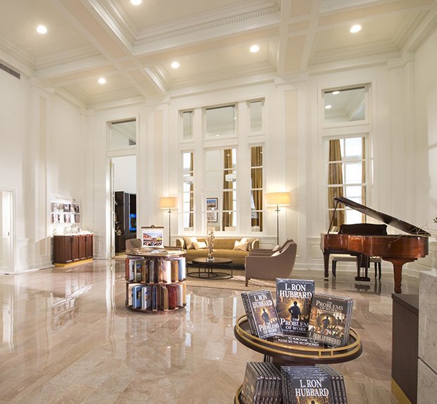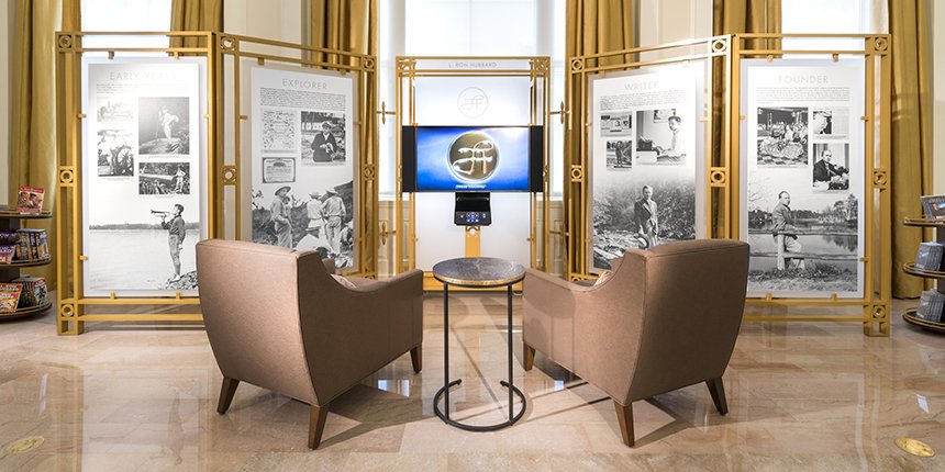 Designed as an open-door informational meeting spot, the Information Centre features a full biographical display illuminating the extraordinary life and legacy of Scientology Founder L. Ron Hubbard—from his childhood to his career as an author before the advent of Dianetics and Scientology, as well as his revolutionary body of work in establishing and defining the religion itself.