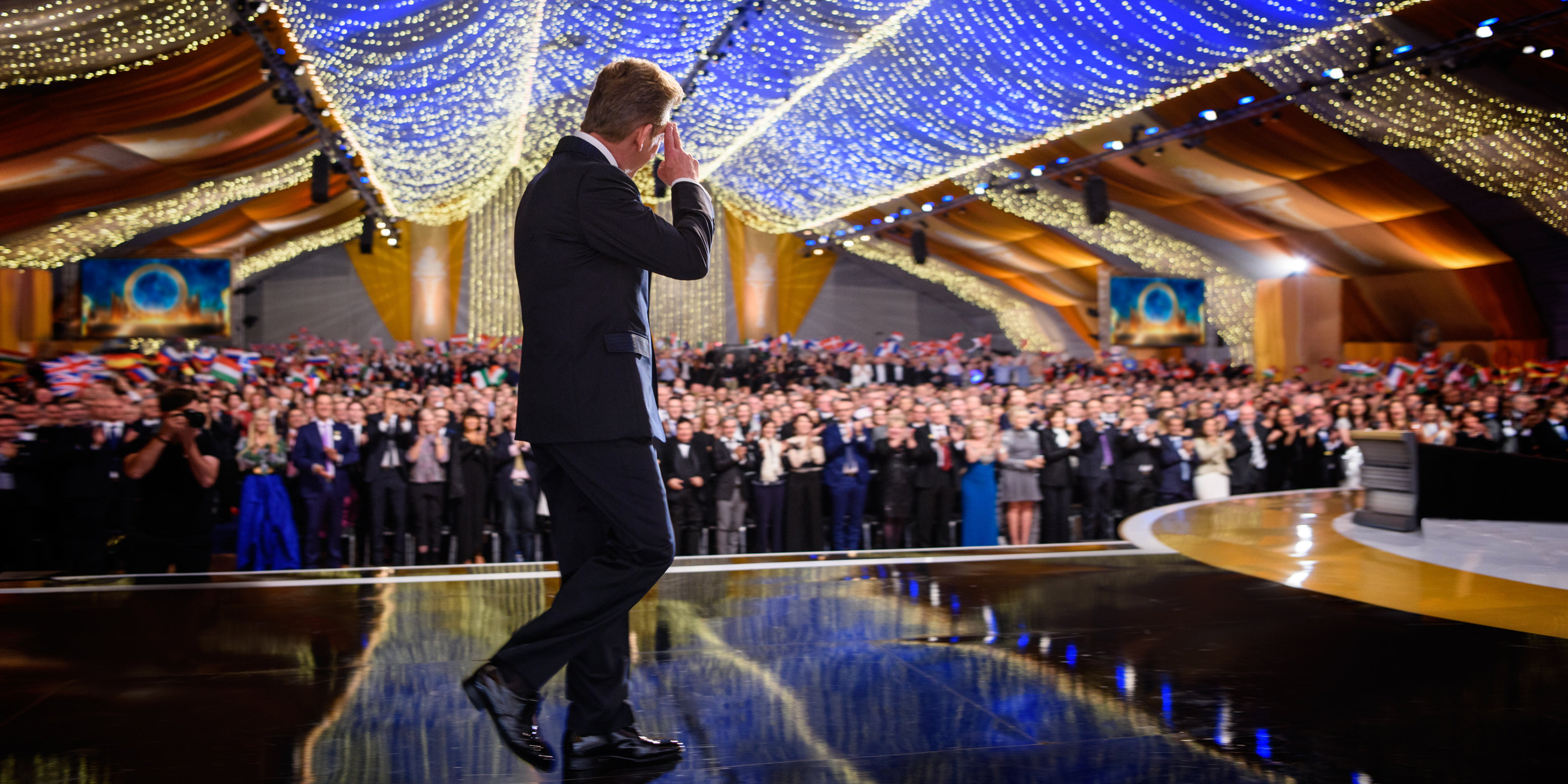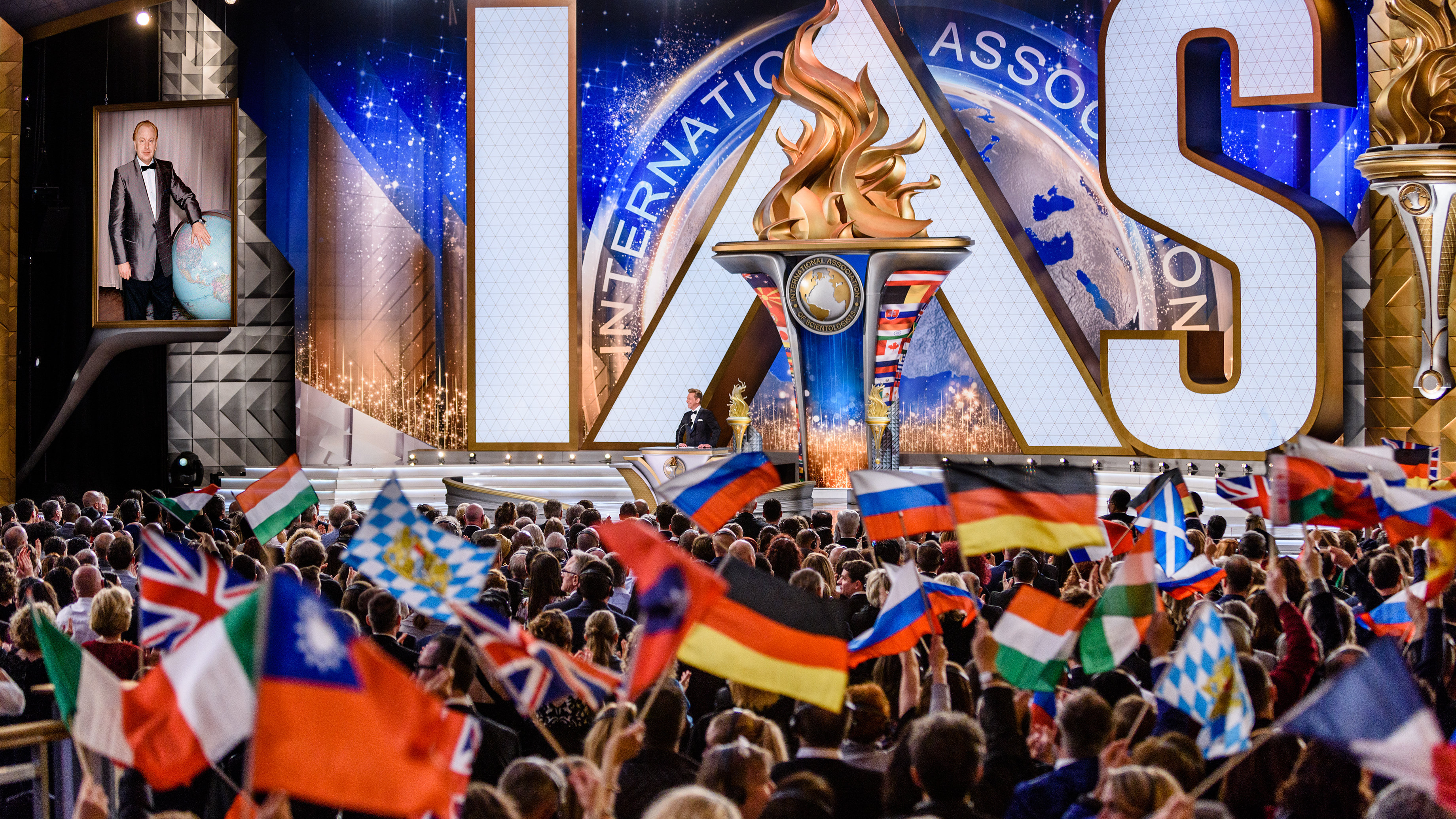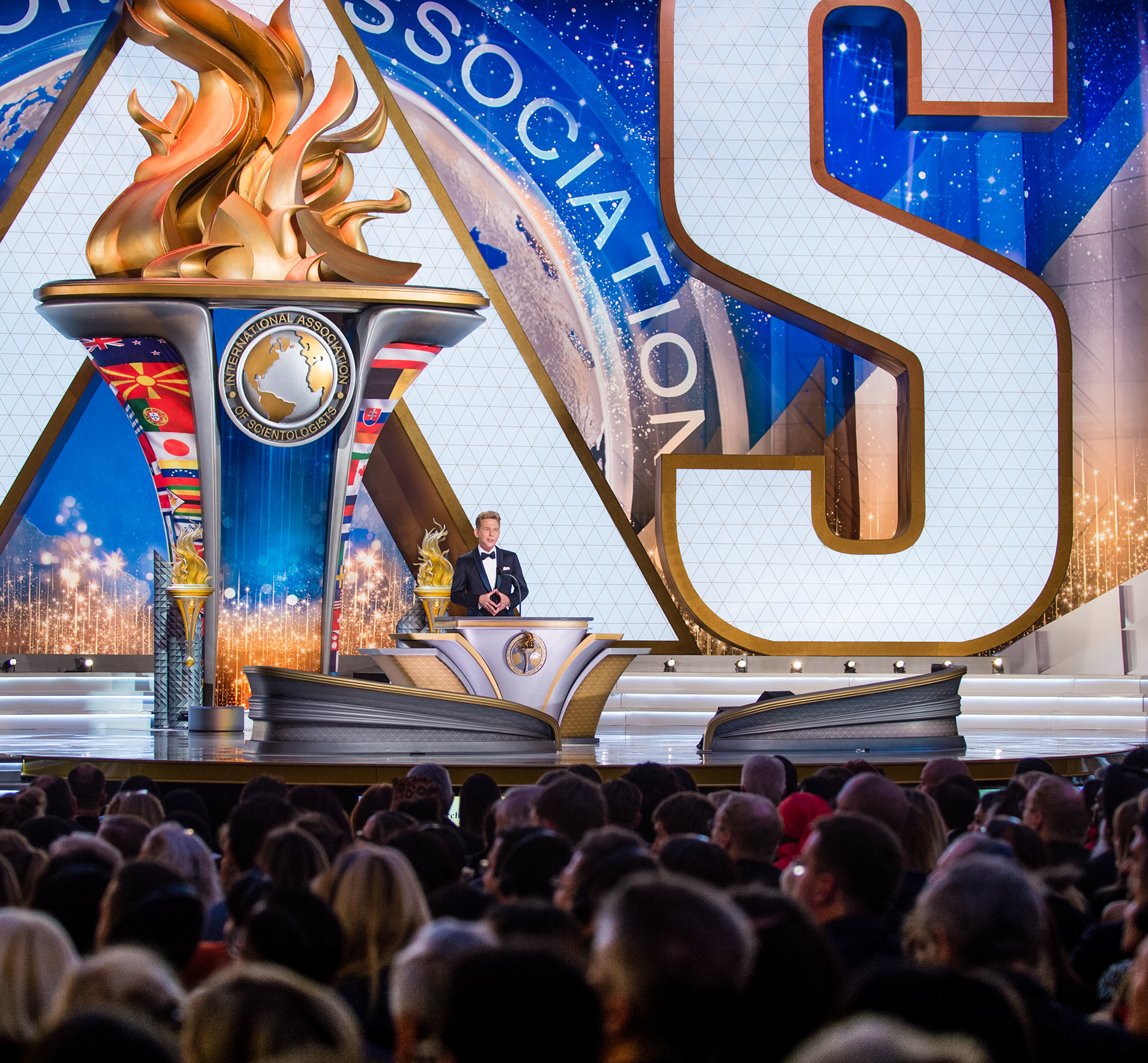 So it was, Mr. Miscavige outlined each punctuation point of that presence across two and a half hours of solid-packed energy. In fact, the night not only surveyed the kingdom of humanitarian outreach from the highlands to the lowlands of Earth, but it further focused on expansion of the religion itself in outlands never previously seen.
