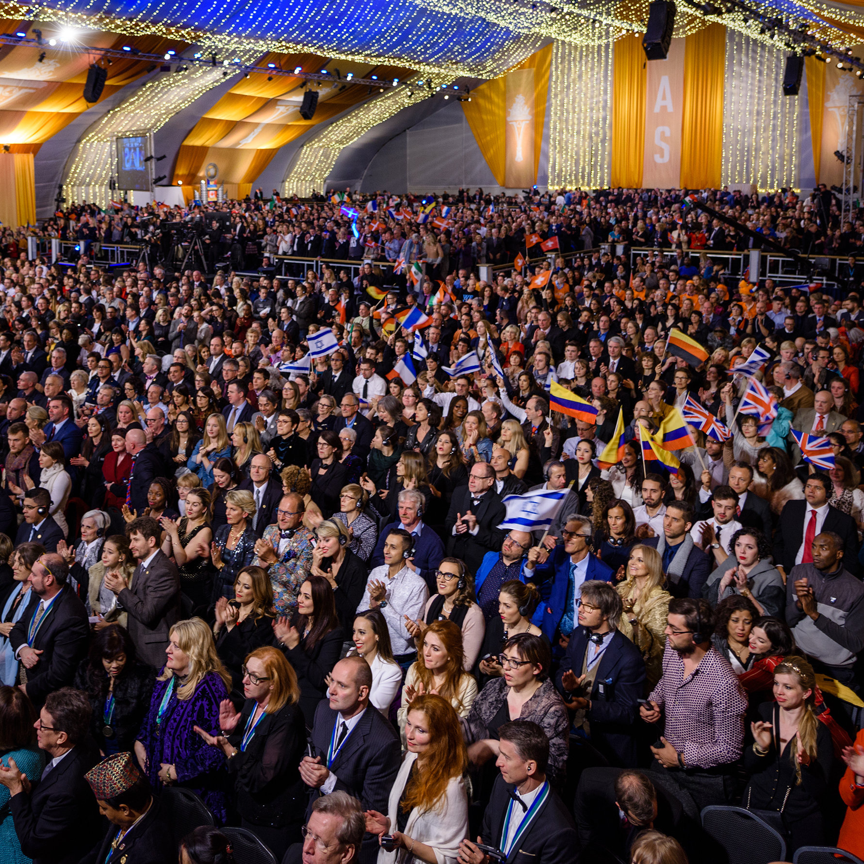 Beyond the Manor gates, past the entrances and down the long sweeping drive to the pavilion and the Great Hall, to a stage erected under cover of a massive marquee, members of the International Association of Scientologists from more than 65 nations filled the air with diverse language as they walked into the arena with a purpose—to celebrate their humanity and that of all mankind.