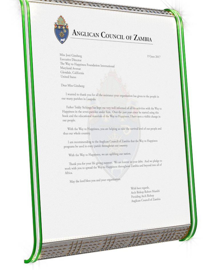 - In Zambia, a land where survival is a day-to-day endeavor, an Anglican Minister forming 70 Way to Happiness groups, turned a message from the pulpit into a tenfold increase in productivity across a region of 50,000 square miles.