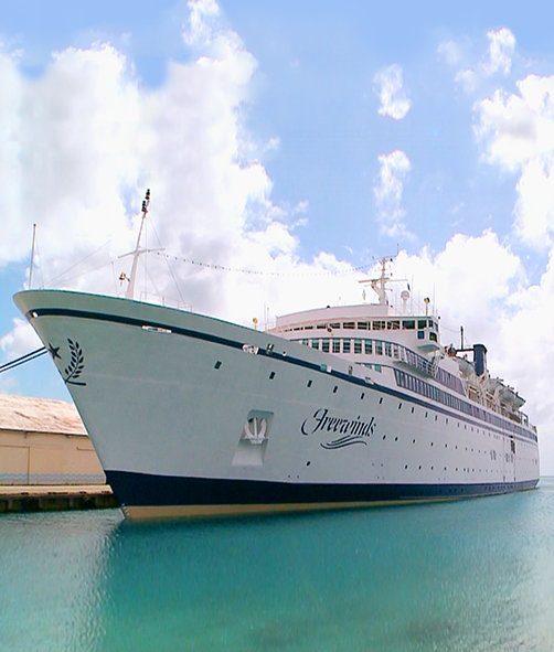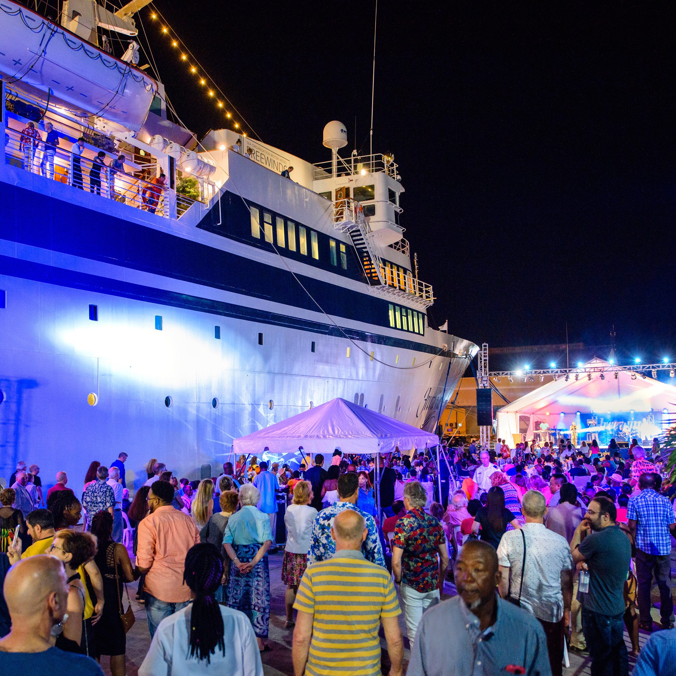 For the Caribbean, merry send-offs of cruise ships and their seagoing tourists are common. But that ship is not a pleasure craft, nor were the attendees assembled for mere fun, although they certainly enjoyed themselves. While the ship, the Motor Vessel Freewinds, has similarities to a cruise ship—the classic lines, stylish staterooms and first-class cuisine of an ocean liner—it is a religious retreat for the Church of Scientology.