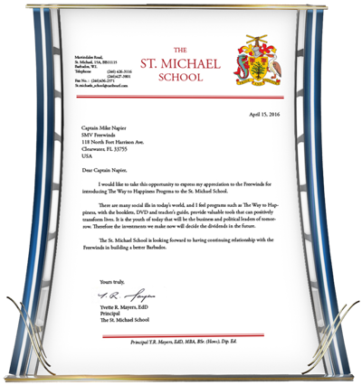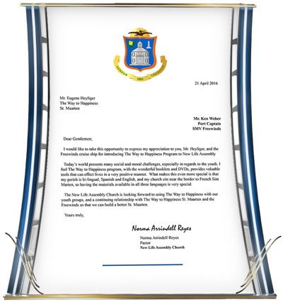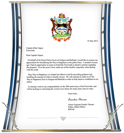 - The Commission of the Antigua Royal Police in recognition of the nearly 250 officers now educated in The Way to Happiness eliciting their pledge to apply those precepts for “uplifting [their] Island Nation.”