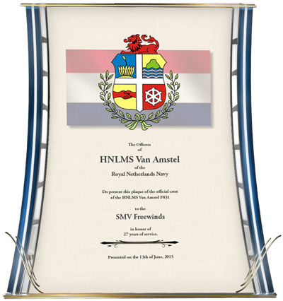- And the Royal Dutch Navy of Aruba honoring the Freewinds’ now total “27 years of service.”