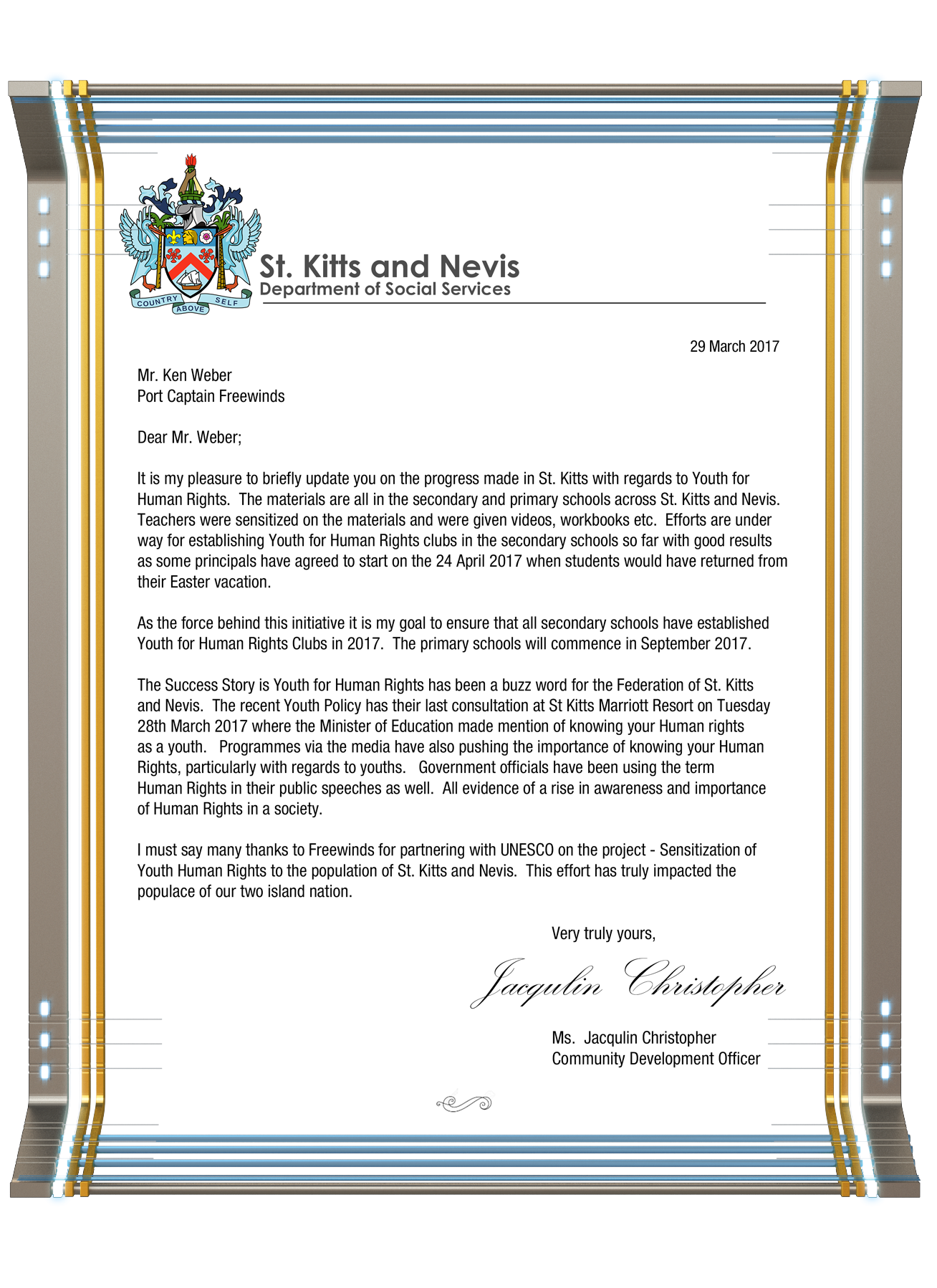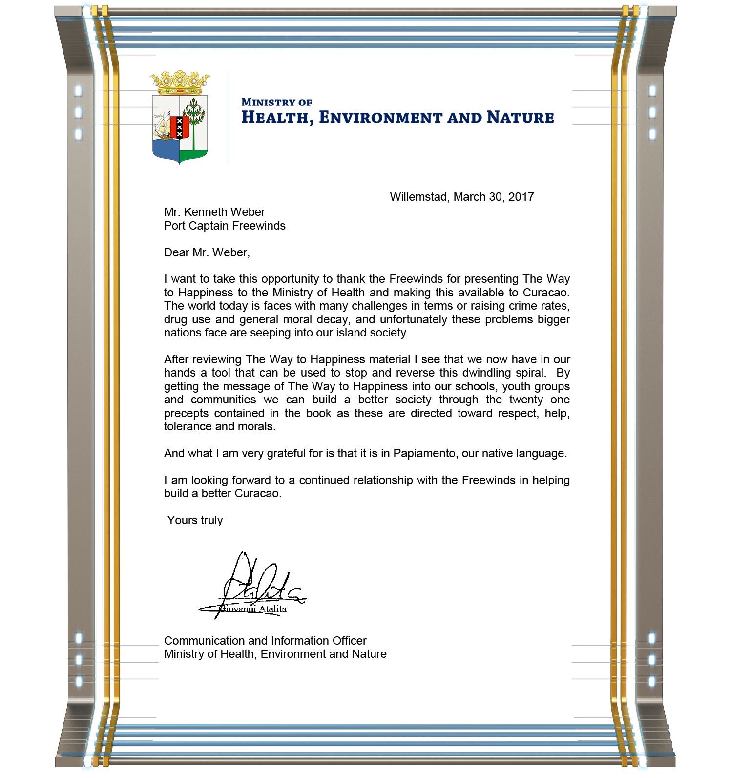 In fact, the value of the Freewinds’ mission was repeatedly acknowledged in testaments from grateful island officials who have personally witnessed the benefits.