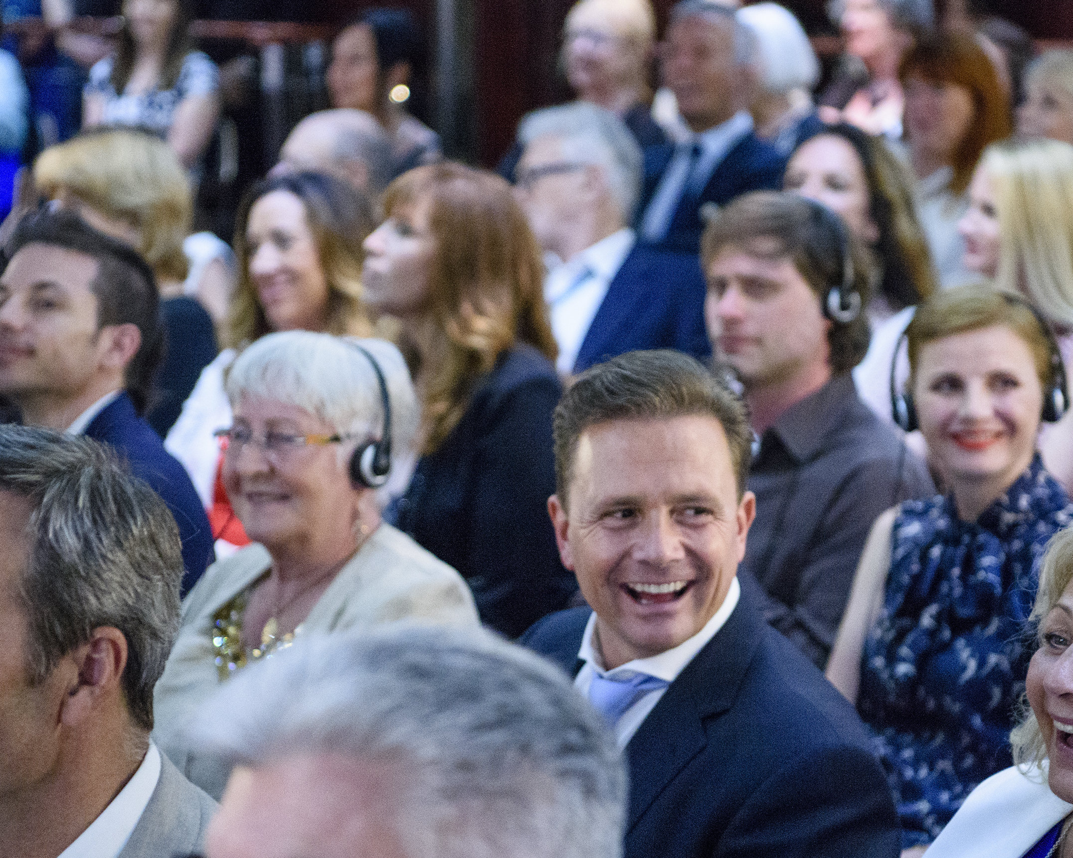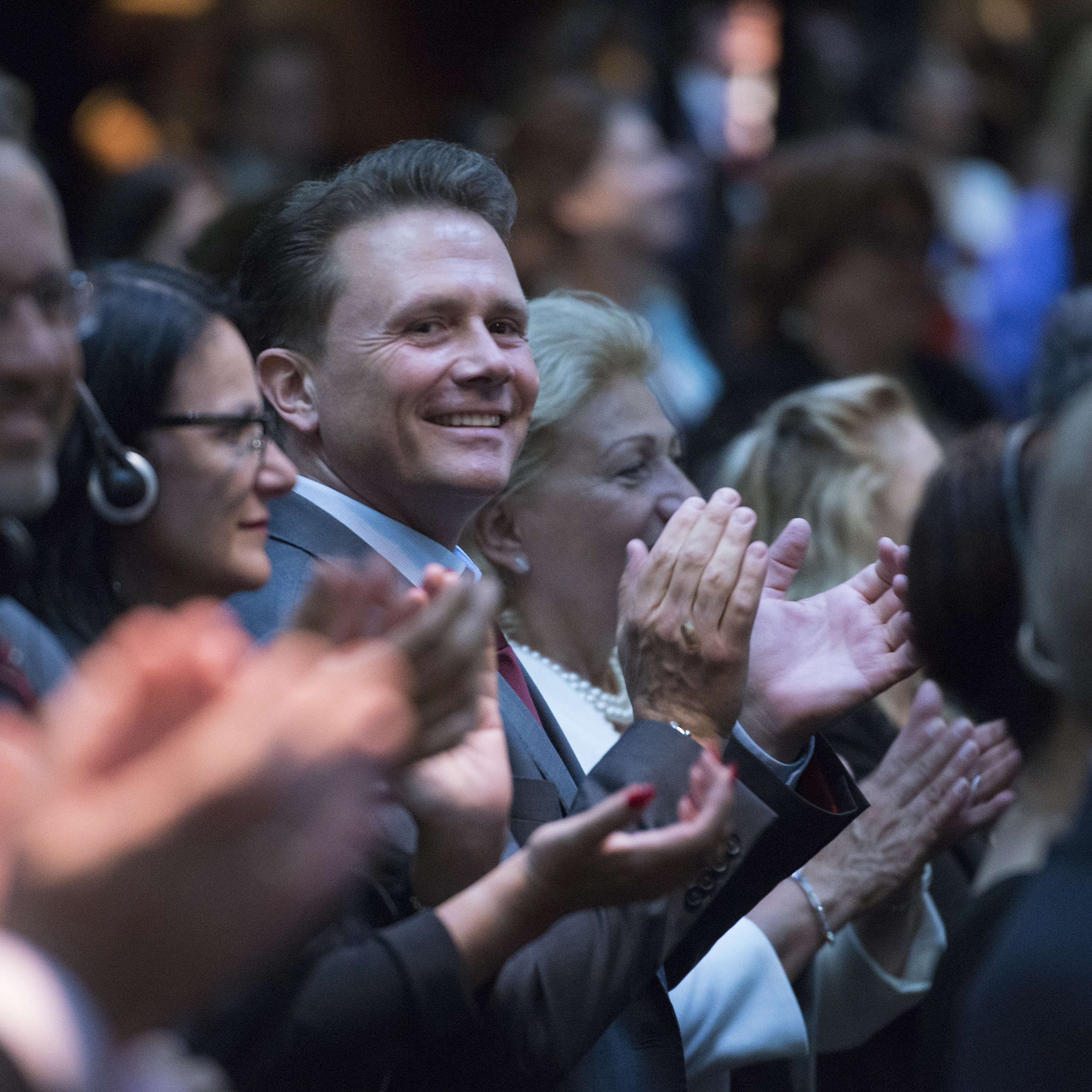 Mr. David Miscavige, ecclesiastical leader of the Scientology religion, is greeted with enthusiasm by an audience of passionate Scientologists, as he takes the stage for the opening night presentation.